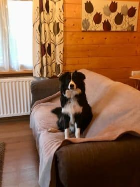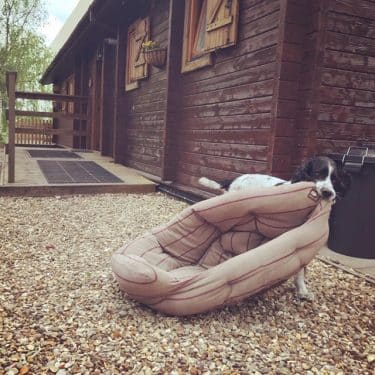 The pine lodges are well set up for bringing along your dogs, as well as there being the lovely spacious area inside the self-catering lodge, there is also a fenced decked area so guests can have their doors open in the warmer months without fear of their dogs (and children!) disappearing after that cheeky rabbit in the distance. We are just adding the addition of a ‘Dog Essentials Box’ to each lodge, this will include a small towel, couple of dog bowls and some poop bags should they be forgotten when you are packing. For those dogs that are used to sitting on the sofas, we suggest you either bring a throw for your dogs to sit on, or we have throws here for you to use during your stay. There is an outdoor tap on each lodge for washing down those muddy boots and paws.